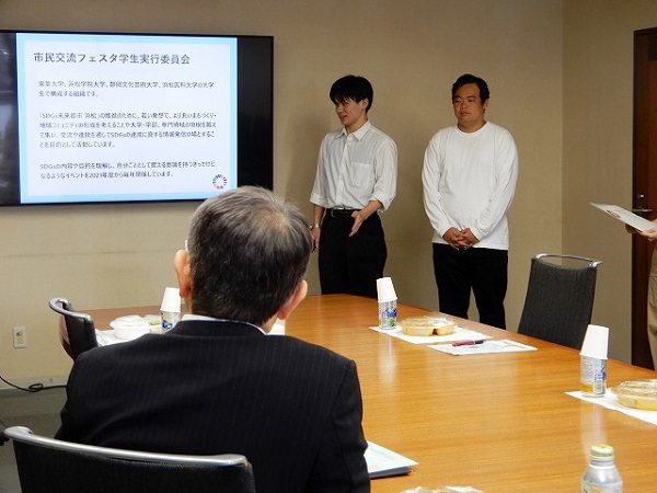 実行委員会代表の小澤遼哉さん(経営学部経営学科3年)は「市長と対面で意見交換ができる貴重な機会となった。市長からエールをいただいたのでイベントを成功させたい」と意気込みました。