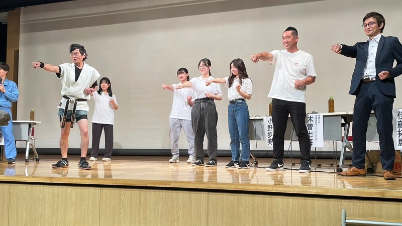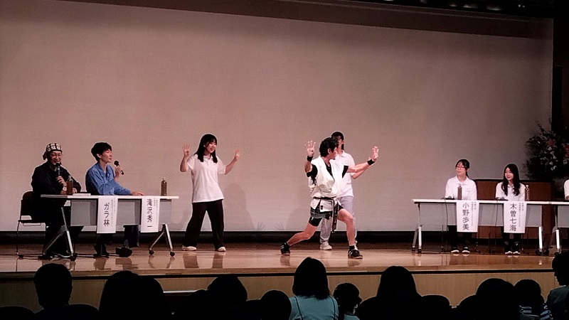 イベントの最後には、芸人がこのイベントために考案した『404カラテサイズ』を披露、学生たちは芸人の弟子としてステージで見本をみせ、会場全員で踊りました。