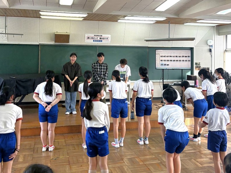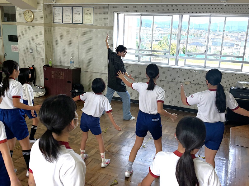 ダンスサークルの学生3名は、10月~11月の全4回にわたり、浜名区にある北浜北小学校の4~6年生25名を対象にダンス講師を務めました。これは地域交流の一環でクラブ活動の運営に協力するもので、日頃の経験を地域に生かすことを目的として参加しました。