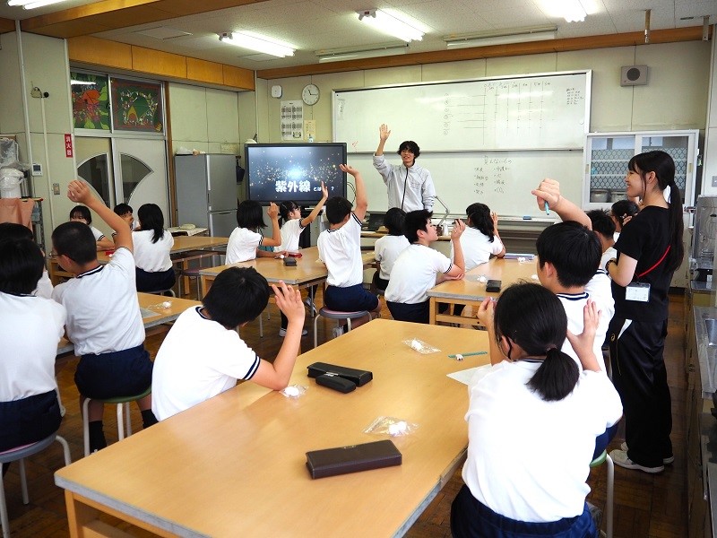 参加した児童から、「空気を物として深く考えたことがなかったから新鮮だった」「電波がこんなにも身近なものであると知って驚いた」「いただいた紫外線発見キーホルダーを使っていろいろな実験をしていきたい」など、興味や関心に応じた素晴らしい感想を聞くことができました。