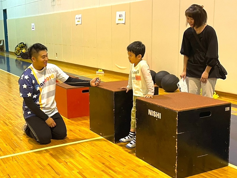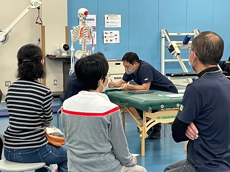 さらに、子どもを対象にした『体力・運動能力チェック』では上体起こしや握力、ボール投げ等の測定をし、親子での振り返りを兼ね、その結果を保護者に記録してもらいました。心身マネジメント学科吉田早織准教授はアスレティックトレーニングの観点からケガをしやすい子どもの傾向を説明すると、保護者からは「改善点を参考にしながら、子どもの健康な身体づくりをサポートしていきたい」と積極的な感想をいただくことができました。