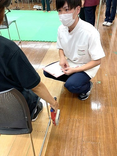 今回の公開講座は4つの講座から構成され、運動と栄養、こころの指導を中心とした心身機能維持・改善の実践指導により、参加者の健康づくりの一助となることを目的としています。この4講座では、それぞれ参加者ご自身の中高年女性に必要な❶身体機能の理解、身体機能計測、❷尿漏れを中心とした運動効果、❸食事の重要性と対策、❹メンタルヘルスの理解と整え方について学びを深めていただきました。そして、講座内の身体機能計測には当学部の学生も多数参加し、実際に求められる計測技術や結果の理解について改めて学ぶ機会をいただきました。
