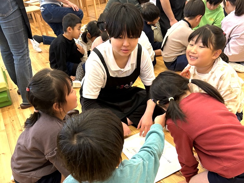学生が園児に講義の感想を聞くと、「楽しかった~」と大きな声が部屋に響き、今回の目的である『いのちをいただくということ』『関わる人に感謝の気持ちをもつこと』を園児に伝えることができました。
