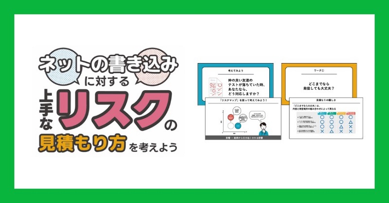 これらの背景から、LINEみらい財団と常葉大学教育学部の酒井研究室は、子どもたちが誹謗中傷の加害者や被害者になることを防ぐため、中学生・高校生を対象に、SNSの誹謗中傷リスクを学ぶことを目的とした情報モラル教材『“ネットの書き込み”に対する「上手なリスクの見積もり方」』を共同開発しました。