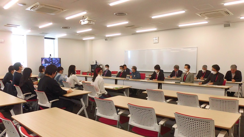 平成29年度から実施している『主役は学生プロジェクト』では、学生と教職員が共に力を合わせて魅力的な大学を作り上げることを目的とし、学友会代表と学長・副学長等との意見交換会を行ってきました。令和4年度からその一環として『とこは未来教育教職学協働事業』を立ち上げ、各キャンパスの学友会代表と教職員代表とがそれぞれのキャンパスの抱える課題と解決策について協議を重ねてきました。その結果について、全学報告会を実施しており、今年度は2月18日(火曜日)にテレビ会議システムを使用し、各キャンパスの学生代表及び教職員が報告を行い、それぞれのキャンパスの取組状況の情報共有と共通理解を図りました。特に、学生代表及び教職員の意見交換では、学生生活等において多方面にわたる意見が出されましたが、最大の課題は学生側も教職員側にもこの事業の周知が不足していることでした。このことを含め、各キャンパスの課題については次年度の教職学協働事業で引き続き検討していくこととなりました。