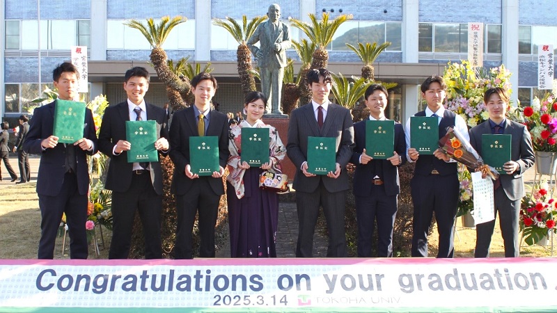 令和6年度卒業生・修了生は、入学当初、新型コロナウイルス感染症拡大の影響を受け、略式の入学式式典や遠隔授業実施、課外活動の制限など、学生生活に多大な影響を受けました。この未曽有の大きな試練を乗り越えた卒業生・修了生の皆さんが大きく羽ばたき、活躍することを心より祈念いたします。