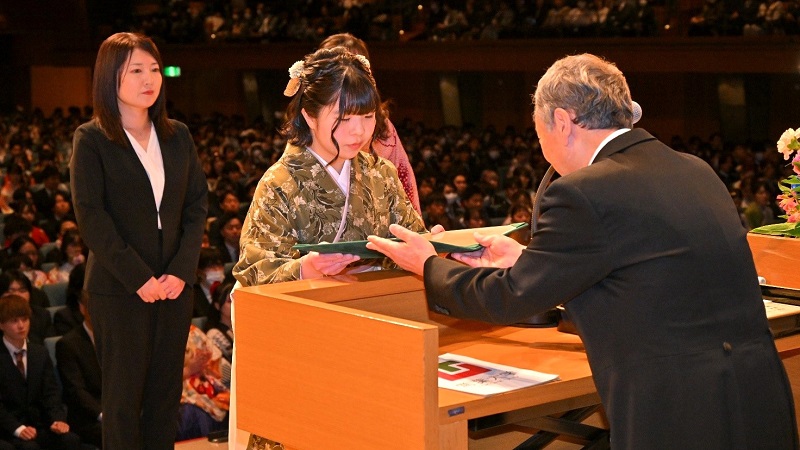 それぞれのキャンパスにおいて、全体式典ののちに学科毎に集まり、学位記の授与が行われました。卒業生・修了生のご家族の皆様におかれましては、ご出席を賜り誠にありがとうございました。
