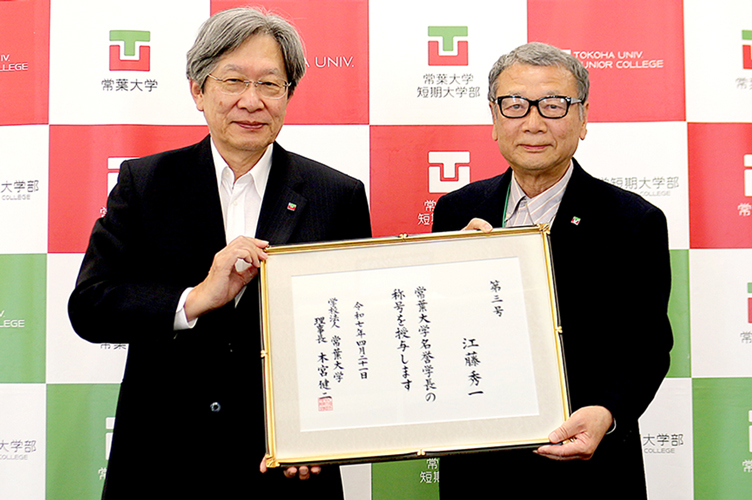 2017年4月から2025年3月まで3期8年にわたり学長を務めた、江藤秀一常葉大学前学長に名誉学長の称号が授与されました。名誉学長の称号は、本学の学長として6年以上在任し、功労のあった者に授与するもので、2025年4月の学内の会議で承認されました。