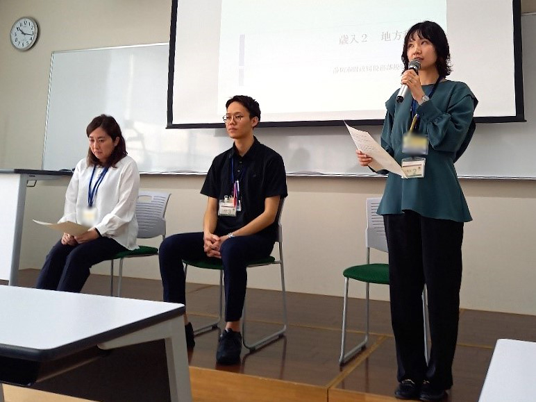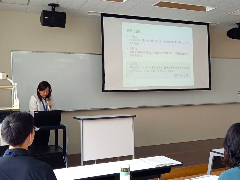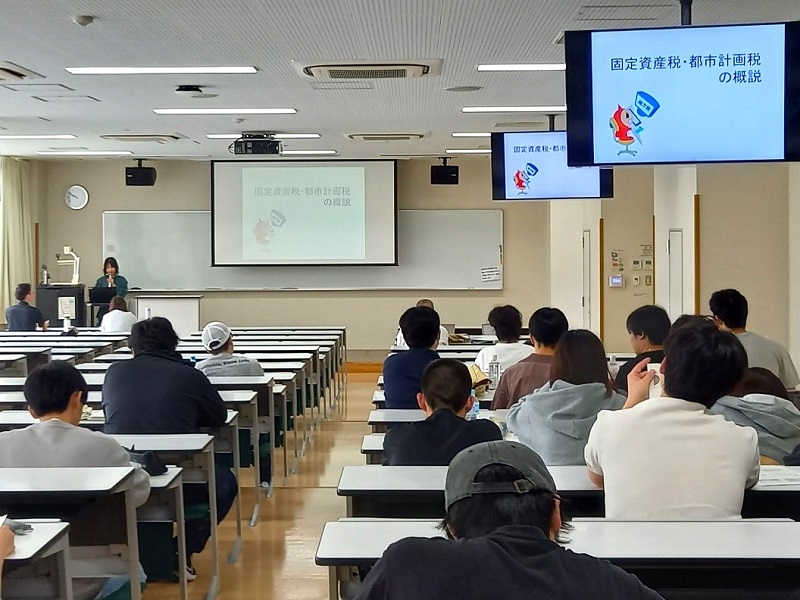 今回の授業では、実際に地方税行政に携わっている若手職員から地方税の概要や業務における苦労話など、現場に直結したお話を聞くことができました。