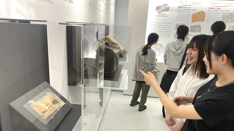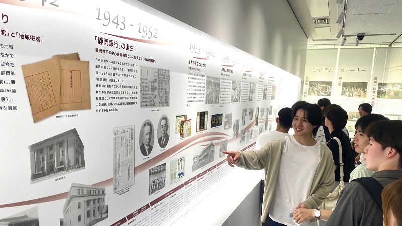 また、タワー内にある『しずぎん歴史史料館』を見学し、静岡銀行の歩みと地域との深い関わりについて学びました。参加した学生からは、「今まで抱いていた銀行のイメージが大きく変わった」や「銀行の仕事にとても興味を持った」 といった声が多く寄せられ、学びの多い活動となりました。