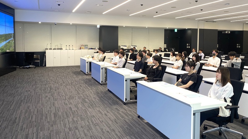 当日は行員の皆さまから静岡県経済を支える多様な取り組みや、国内外の金融サービス、SDGsへの貢献、そして同行主催の『TECH BEAT Shizuoka 2025』について説明いただきました。学生たちは、銀行の役割や業務の幅広さに触れ、金融業界への理解を深める貴重な機会となりました。