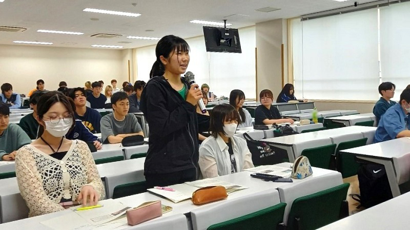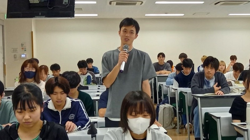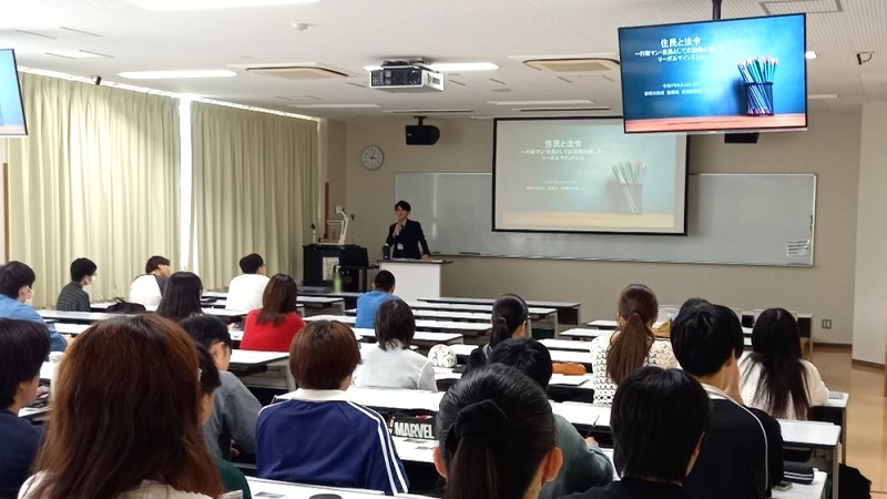 この授業は、将来、地域社会の主役となる学生が地域社会の仕組みや地方行政を理解することを目的として行われ、今回は住民(学生)が法令とどのように関わる中で生活しているのかを確認し、法令の大切さや自分自身の生活でどう取り扱うかについて学ぶ機会を得ました。