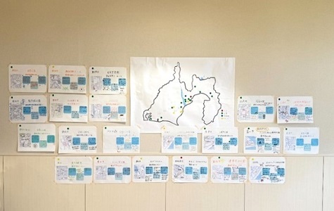マップづくりでは、最初に各自でおすすめのお出かけ先の情報を書いていきました。「お出かけ先で重視することは何ですか?」「駐車場の有無です」といった学生と保護者の方とのやりとりや、「行ったことのないエリアの新しい場所を知れてうれしい」「学生のおすすめを聞いて行ってみたくなった」といった保護者の方の声もありました。各自のおすすめ先の情報は、静岡県の大きな地図のまわりに貼り出ました。同じ場所でもおすすめの理由が異なっていたり、実際に訪れたからこそ分かる情報が詰まっていたりと、とても見ごたえのあるオリジナルマップが完成しました。