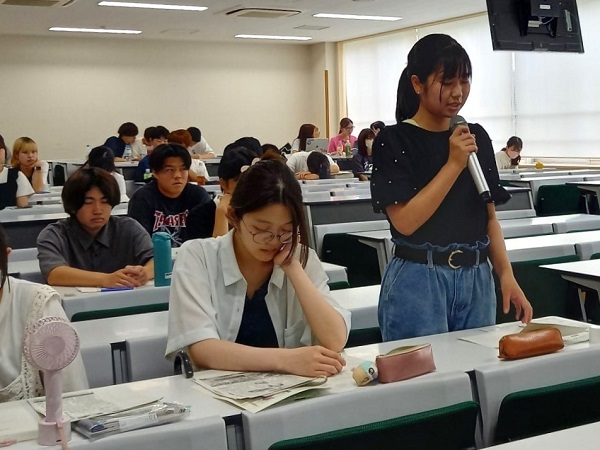 学生からは、「新聞は誰のために書くのか」「膨大な情報に溢れる新聞の読み方」などの質問に対し、吉田記者から、新聞はまず見出しから好奇心のあるものを選んで読むことや社会への関心を持つことの大切さなど、丁寧にそしてわかりやすく回答していただきました。