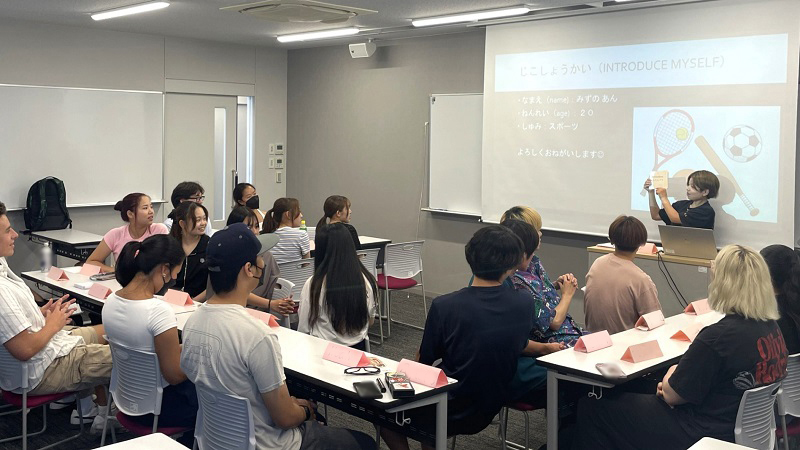 2日目の7月10日(木)には、グローバルコミュニケーション学科の2名の学生が登壇しました。具体的な活動としては、既に終えた広島旅行の感想を質問したり、それに答えたりする練習及び週末に控えた京都旅行で何をしたいのかが言えるように、また、土産物屋で買いたいものが伝えられ、店員の発話が聞き取れるようになることを目標に、授業を展開しました。