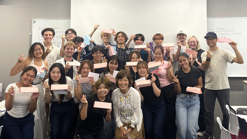 帰国直前の7月18日(金曜日)には、英米語学科の学生が登壇し、当日夕方開催のホストファミリーを迎えた『さよならパーティー』で感謝の気持ちが伝えられるよう、別れの際の会話練習や御礼の手紙を作成しました。