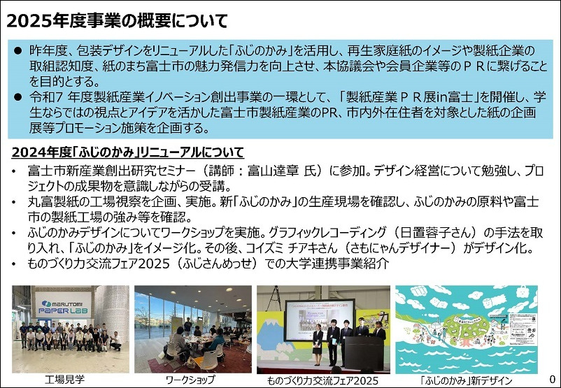 経営学部小豆川ゼミ3年のメンバー17名は今年度、令和7年度『ふじのくに地域・大学コンソーシアムゼミ研究室等地域貢献推進事業』の採択を受け、昨年度現4年生がリニューアルした新『ふじのかみ』を活用し、再生家庭紙のイメージや製紙企業の認知度アップ、さらに紙のまち富士市の魅力発信のためのPR活動を実施します。