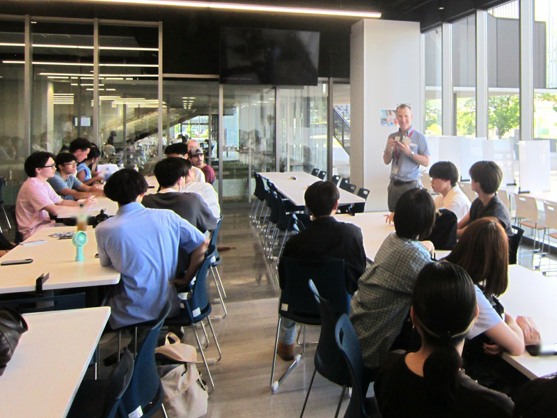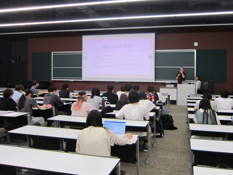 7月1日(火曜日)にはクレイトン大学学生の引率教員であるJoseph (José) C . McClanahan先生と海野恵美子先生が 英米語学科1年生の教養セミナーにおいて、特別講義を行ってくださいました。講義を通して学生は、日米の大学のそれぞれの学びの違いや日本以外の外の世界を見ること、また外から日本を見る視点の大切さなどを学びました。