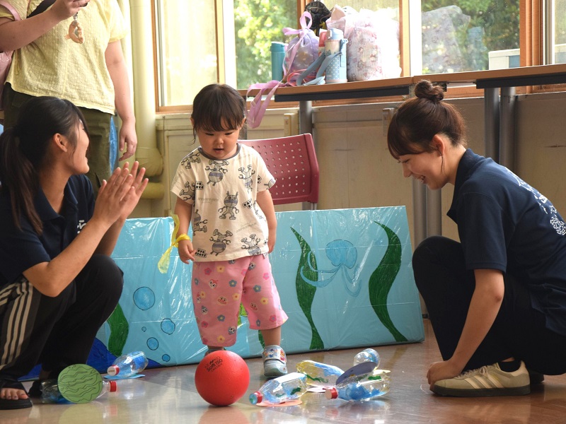学生からは「手作りした環境を喜んでもらえた」「緊張したが協力してやり遂げた」などの声があがりました。副代表を務めた岡本真言さん(保育健康学科3年)は「代表のサポートや学生との連携に努め、仲間と協力して課題を乗り越えることができた。子どもたちと関わる中で多くの学びがあり、貴重な実践の場となった」と振り返りました。