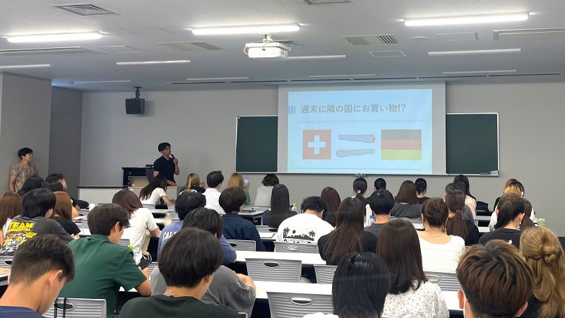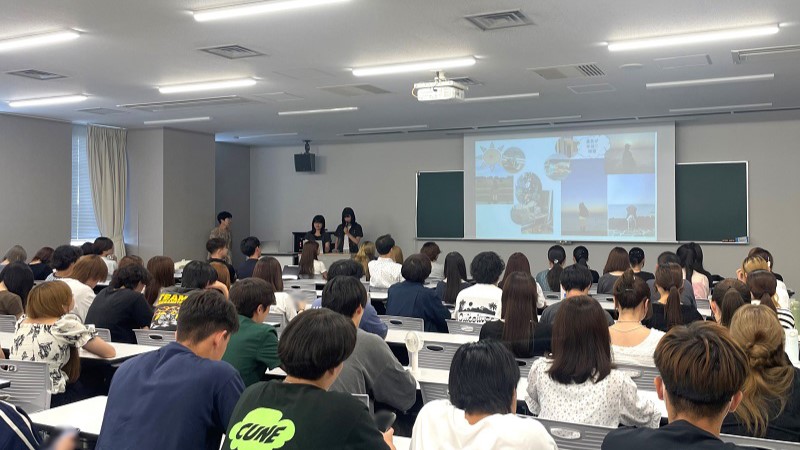 グローバルコミュニケーション学科では、7月24日(木曜日)の3限目に、1年生の学生を対象にした『学生海外活動体験報告会』を開催しました。具体的には、韓国・タイ・ヨーロッパ複数か国に自治体や企業のプログラムを活用したり個人で訪問したりした3年生6名が同学科1年生全員を対象に、それぞれの体験報告を行いました。