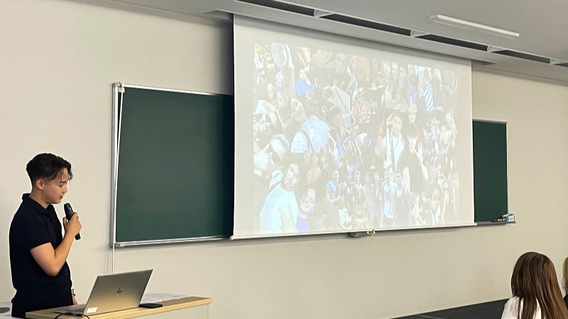 天野シェイロさんは、本来の希望だったスペイン留学の対案として実施した、ヨーロッパ5カ国を巡る個人旅行の体験談を紹介。訪問各国の『物価・治安・食文化・交通事情』などについての比較分析も披露しました。それぞれの国の『特徴』の多様性もさることながら、国境を越えて観察された『共通点』にも言及し、実り多き欧州旅行を堪能した旨が、聴衆にも共有されました。