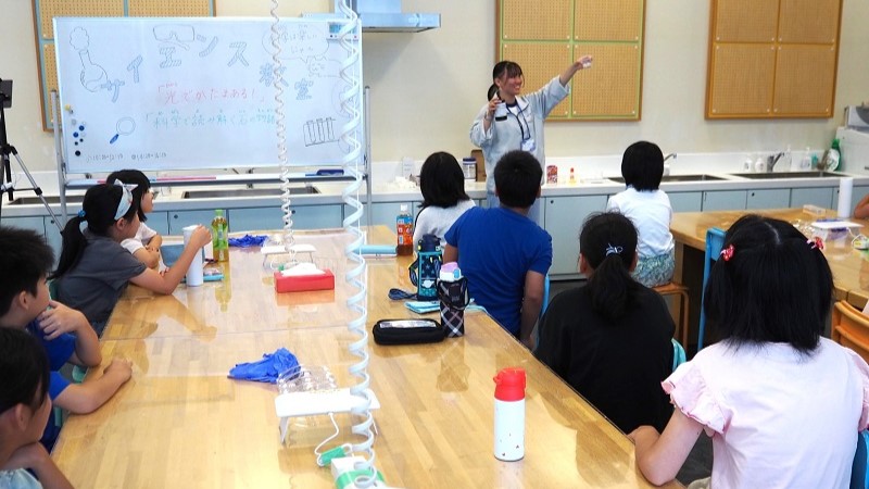 当日は、理科研究部が『わくわくサイエンスまつり』を、学校教育課程の小田切ゼミが『わくわくサイエンス教室』の実験等を企画・運営しました。