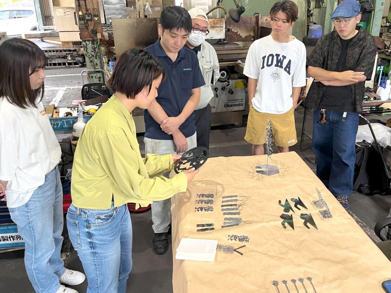 9月19日(金曜日)、富士市にある(有)増田製作所にて『ものづくり×デザインプロジェクト』の一環として環境デザイン領域の3年生がデザインした金属製品の発表・鑑賞会が行われました。