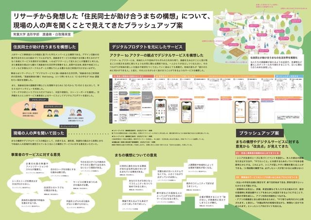 発表はいずれも授業外で半年近く活動してきたプロジェクトです。顧問の教員からデザインの最新の知見を受けながら研究会独自の手法を開発してきただけに、自分たちの学びが実際の社会で通用する手応えを得る機会となりました。