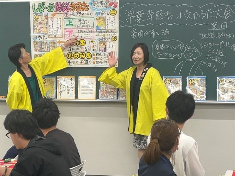 当日は、学生10人と社会人2人が参加しました。参加した学生からは、「取り札のイラストと読み手の解説がわかりやすかったので、防災知識が深まった気がする」「ゲーム性が高かったので想像以上に楽しめた」などの感想がありました。