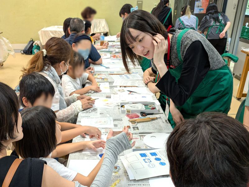 9月19日(金曜日)・20日(土曜日)・21日(日曜日)・23日(火曜日・祝日)に静岡県立美術館で開催されたロダンウィーク2025友の会ひろばにて、造形学部造形学科アート領域で学ぶ2・3年生9名が、広場案内ポスターの制作と消しゴムスタンプ作りのワークショップ(23日)を担当し、約 60 名のお客様の制作サポートを行いました。