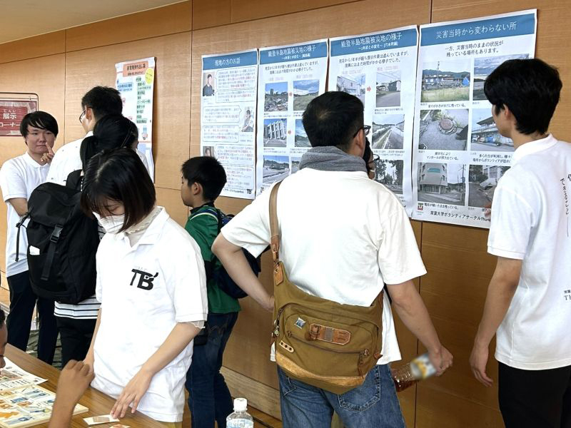 ブースでは、9月に能登半島地震の被災地を視察した学生が、発災から1年8カ月経った現地の様子や被災された方の経験を紹介したポスターを見ながら説明しました。また、防災バックの中身を展示し、自分だけの非常用持ち出し袋を作る体験をしてもらうコーナーや防災シュミレーションゲームを実施しました。