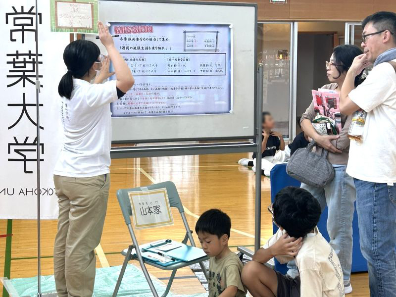 この活動に参加した黒石誠登さん(健康栄養学科1年)は、「能登半島被災地の現状を紹介すると、驚かれた。災害を風化させないよう伝えていきたい」と語り、また、「ゲームや体験を通して、避難生活に必要なものを知ってもらえたらうれしい」と話しました。