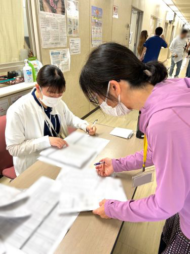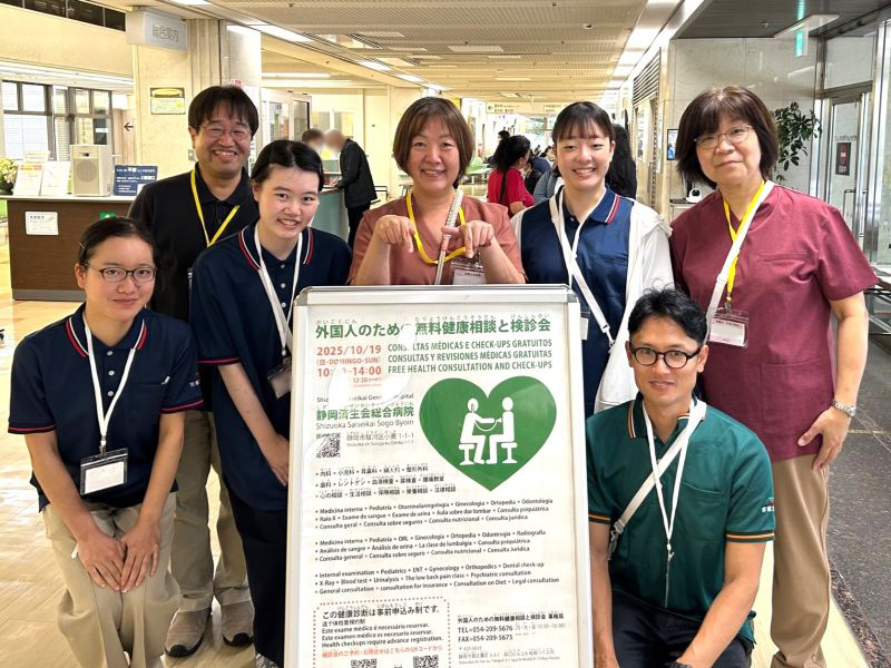 10月19日(日曜日)、静岡済生会総合病院で開催された『外国人のための無料健康相談と検診会』に、健康科学部看護学科4年杉山和樹さん、2年花嶋 葵さん・小澤くるみさん・原川真梨子さんの4名と、看護学科教員の菊地美帆教授・上田真仁講師・原澤純子講師の3名がボランティアとして参加しました。