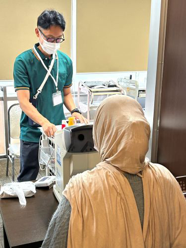 多くのボランティアが一丸となって検診会を支える姿はとても感動的であり、看護師を目指す学生にとって、だれに対しても平等に手を差しのべる医療者の姿を学ぶ貴重な経験となりました。受診会場には、宗教に配慮してお祈りの部屋が用意されていたり、外国人のボランティア用にムスリムの方が安心して食べられるハラル弁当が用意されていたりと、異文化への配慮についても学ぶ良い機会になりました。