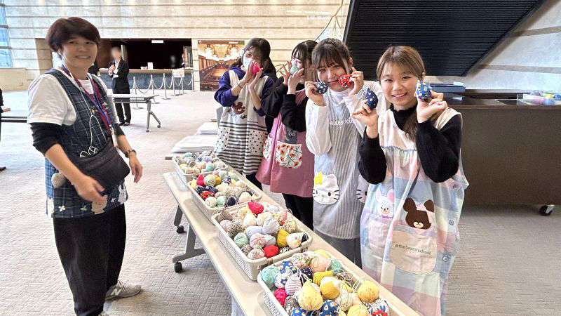 本コンサートシリーズの第1回目も本学短期大学部が企画・出演をさせていただきましたが、記念すべき第10回目も委託いただいたことは大変喜ばしいことです。本コンサートでは、子どもが安心・安全に音楽のひとときを楽しめるよう、さまざまな試みを実施しました。その一つとして、会場で音楽をもっと楽しめるように、また、その楽しみを家庭にも持ち帰ってもらえるよう、保育科生がベビー・マラカスを作り、来場者全員にプレゼントしました。