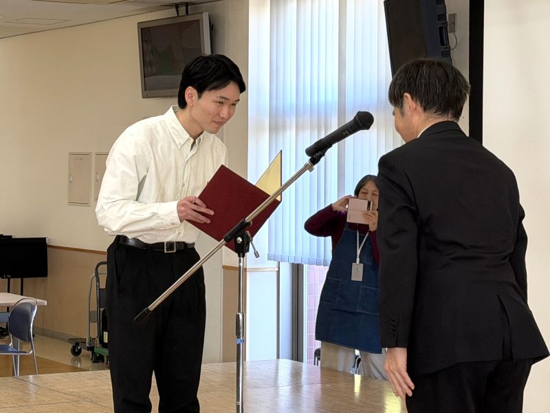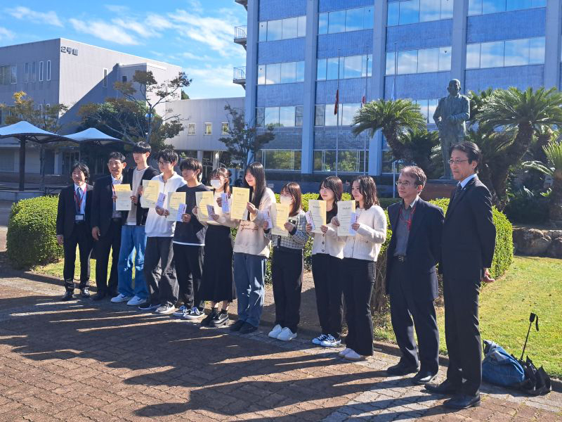 学長奨励賞は今年度、瀬名キャンパスでは個人表彰8名、団体表彰1団体が表彰し、代表者2名に賞状が授与されました。