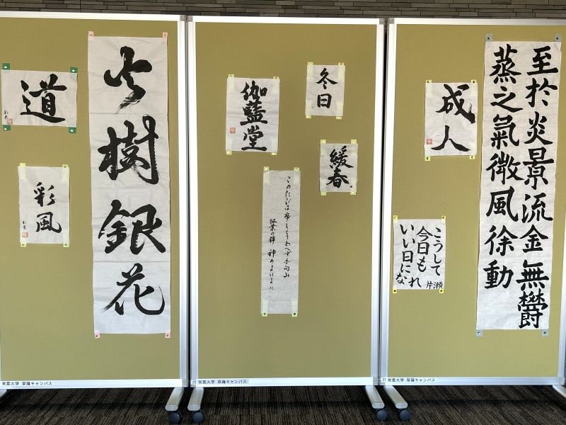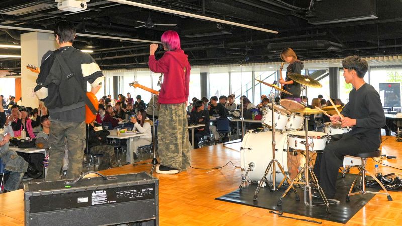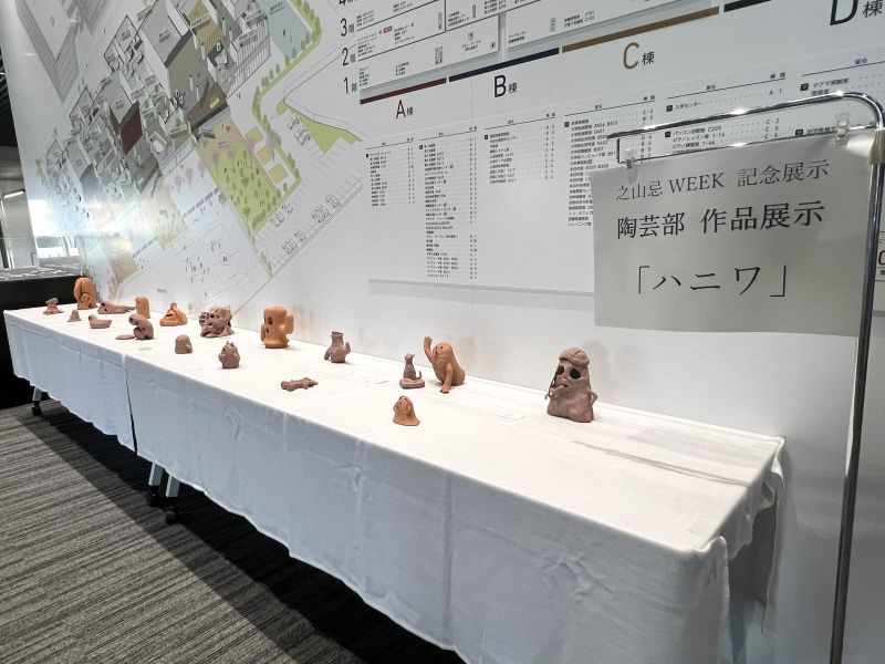 草薙キャンパスでは之山忌WEEKの活動として、記念演目では昼休みのグランテーブルにおいて『チアリーダー部』『フラメンコ部』『K-POPカバーダンスサークル「HaNURU」』『有志バンド「タイミー」』がそれぞれ出演、記念展示では草薙キャンパスのトコハ・ストリートにおいて『書道部』『写真部』『陶芸部』による作品展示が行われ、日ごろの活動の成果を披露しました。