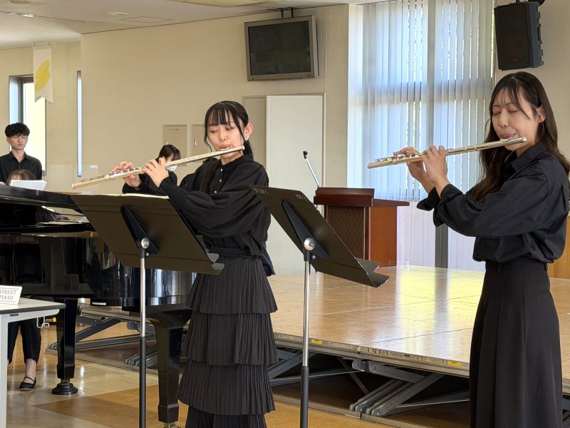 また、 10月30日(木曜日)の記念式典では、短期大学部音楽科・専攻科学生による学園歌の演奏により厳かな雰囲気で始まり、阿部副学長による講話、学長奨励賞授与と受賞者代表によるプレゼンテーションと演奏を行いました。
