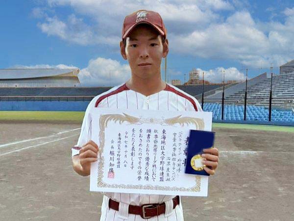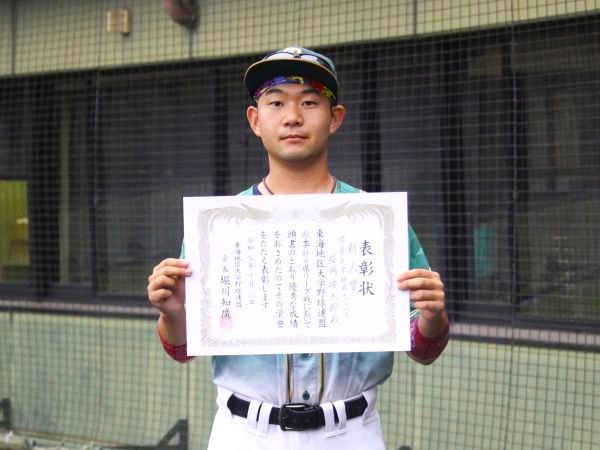 東海地区大学野球連盟静岡学生野球秋季リーグ戦(8月23日(土曜日)~10月8日(水曜日))の全日程が終了し、本学静岡キャンパス硬式野球部の益岡峻太郎選手(経営学部2年)が新人賞、浜松キャンパス硬式野球部の石黒豊生選手(健康プロデュース学部4年)がベストナイン(外野手)を獲得しました。