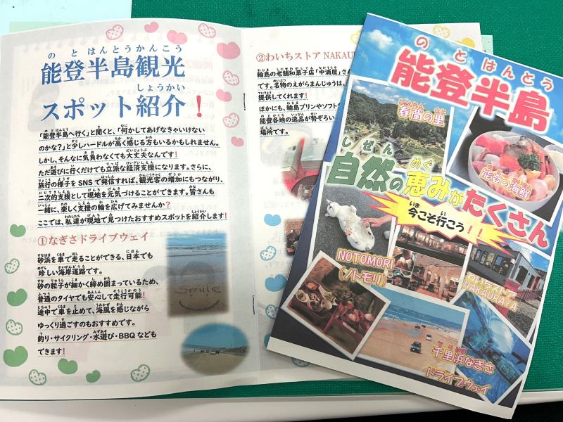 会場では、被災地を訪問した学生が作成した『能登半島』ガイドブックが配布されました。作成者の中園彩花さん(健康栄養学科1年)は「自分たちが目にして感じたことを伝え、自分事に感じてもらいたい。また、被災地に行くことも経済支援につながると思うのでぜひ奥能登を訪れて欲しい」と語りました。