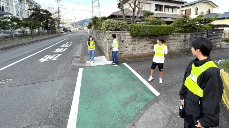 今回は10月から11月にかけて計5日間の活動を実施し、草薙・水落キャンパスの学生・職員約30名が参加しました。参加者は専用のビブスを着用し、キャンパスを起点に周辺の小中学校をパトロールしました。