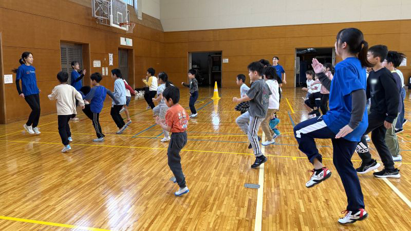 参加した今別府侑芽さん(スポーツ健康科学科4年)は、「自分たちが大学で学んだことやこれまでの経験を活かしながら指導でき、子どもたちが「できた!」「楽しかった!」と笑顔で参加してくれたことにとてもやりがいを感じた。参加者の年齢や運動経験に合わせて講座内容や伝え方を工夫することで、より分かりやすく届けられることも実感し、貴重な学びになった」と振り返りました。