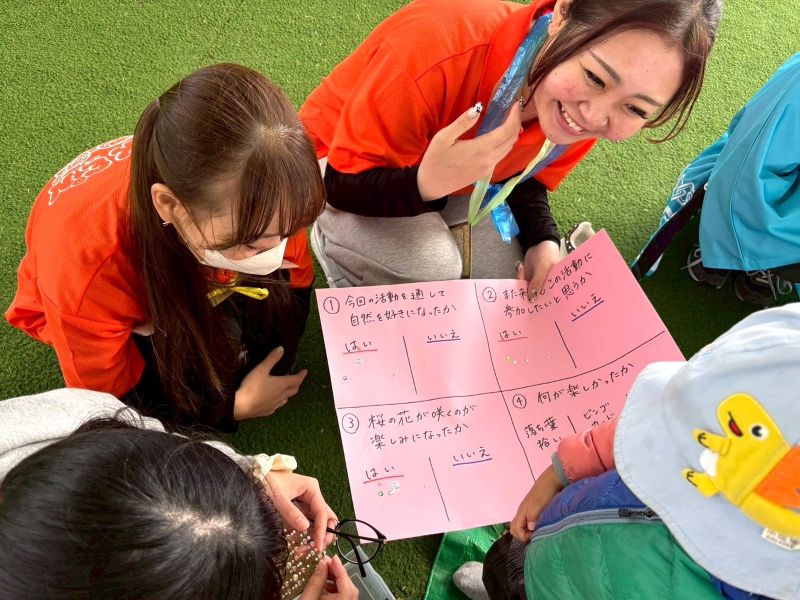 このイベントを企画した福島卯乃さん(保育健康学科4年)は、「広い公園内でのびのびと自然の中を駆け回る姿を見て元気をもらった。イベント後、自然を好きになったと声を聞けて嬉しかった」と話してくれました。