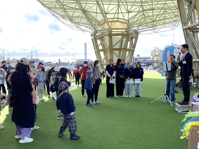 最後に「桜の花が咲くのが楽しみになったか」と質問すると全員が「はい」と回答し、今回の活動が季節への関心を高める良いきっかけとなりました。また、この日は、草地博昭磐田市長にも参加していただき、親子約100人と秋を楽しみ、また桜の季節に思いを膨らませました。