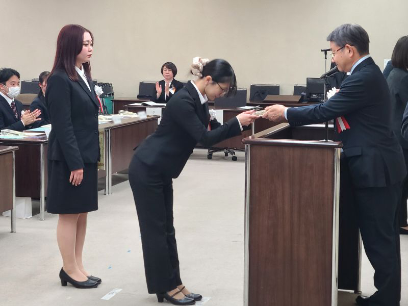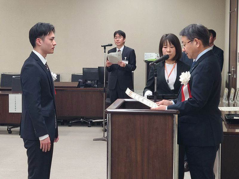 地域の文化活動や奉仕活動などに積極的に取り組んでいる青少年や団体の活動を賞賛し、奨励する『浜松市青少年の表彰』の受賞式が2025年12月16日(火曜日)、浜松市役所で行われました。個人の部18名と団体の部8組が表彰され、本学からは個人の部で加藤登偉さん(理学療法学科3年)、団体の部でボランティアサークルThunder BirdsとSun&Leafが善行賞を受賞し、中野祐介浜松市長から賞状と盾が授与されました。