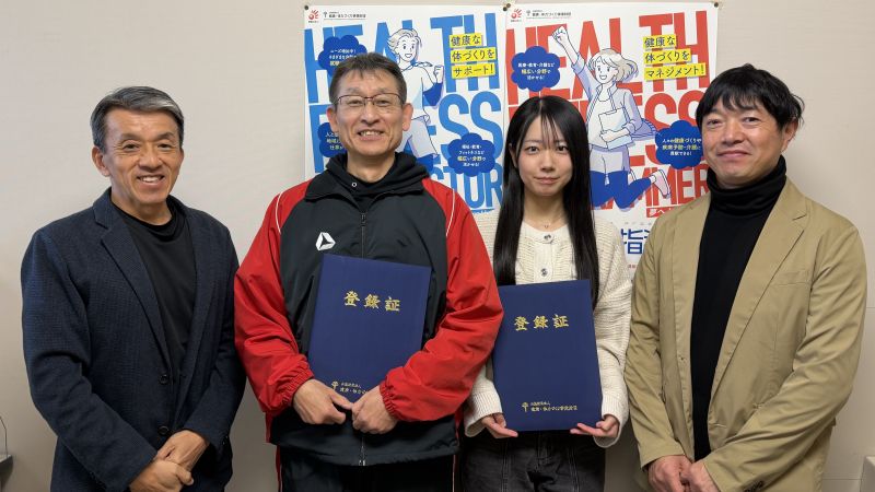 このたび行われた第160回健康運動指導士認定試験に、健康プロデュース学部スポーツ健康科学科4年生3名が受験し、後藤ひなたさんと酒井憲夫さんの2名が合格しました。
