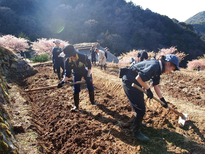 本学社会環境学部の学生22名が、2月28日(土曜日)から3月1日(日曜日)にかけて、松崎町石部の棚田で畦切り作業を行いました。