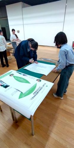 また、学生たちは、この茶畑の歴史を紹介する『茶畑と美術館』展の展示作業もお手伝いしました。パネル製作・貼り付け・会場設営など、これまでの博物館学での学びを活かすことができました。展覧会は5月10日(日曜日)まで、静岡県立美術館県民ギャラリーで開催しています。