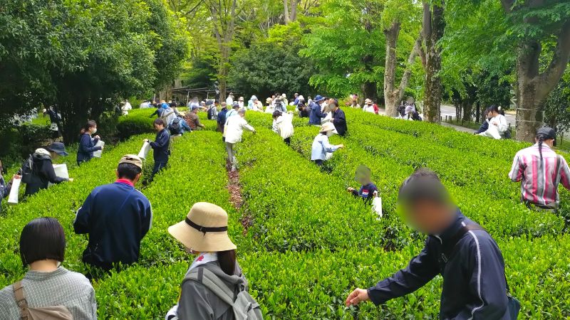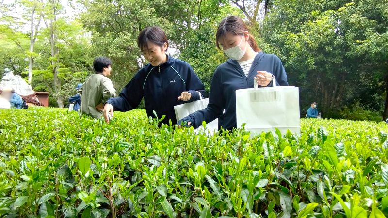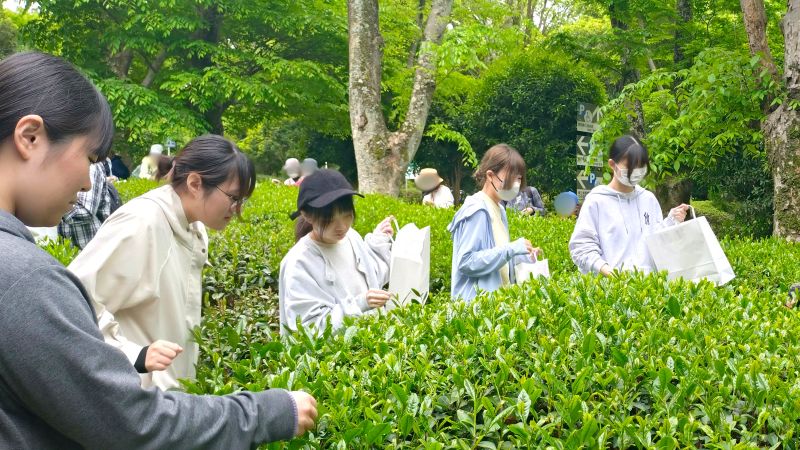 教育学部生涯学習学科と造形学部の博物館実習クラス27名が4月25日(土曜日)、静岡県立美術館ボランティア『草薙ツアーグループ』が主催するお茶摘み作業をお手伝いしました。