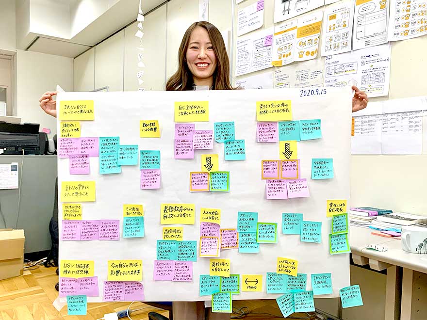 海野さんはサービスデザインを学ぶ研究室「In&Out Lab」に所属しています。そこでの活動を通して、企業が持つ課題よりも身近な地域に落ちている課題を解決したいと思うようになりました。地域の輪の中に入っていけばいくほど課題に近づいたこと、自分の力でその課題を解決できたこと、自分の行動が必ず誰かに伝わるという、多くのうれしい経験が海野さんを現在のテーマへと導きました。身近なところを解決し、人や地域との関わりを大切にする海野さんだからこそ、力を発揮できるテーマなのだと感じました。